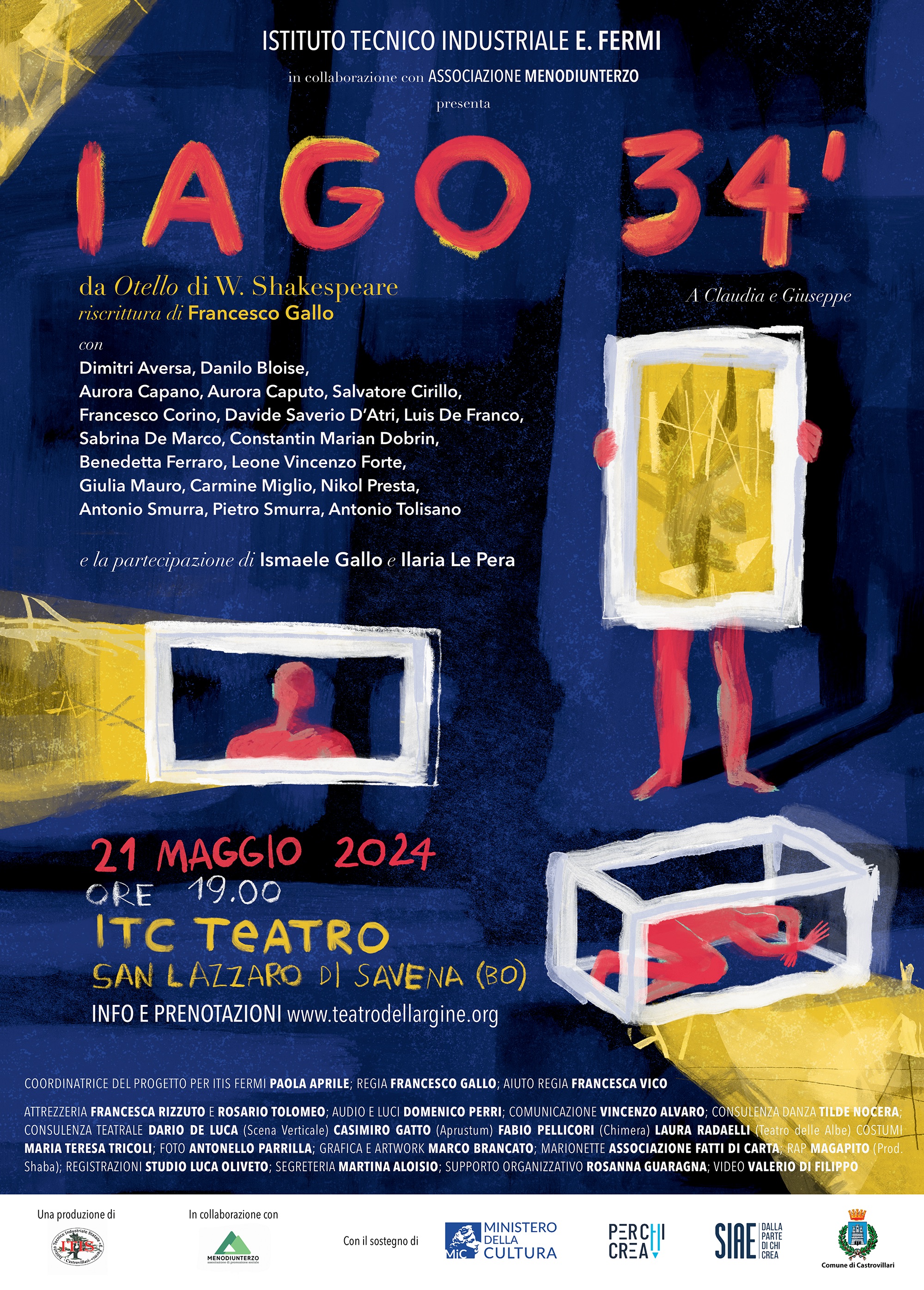 Il progetto Mechanè dell’Itis “E. Fermi” di Castrovillari, fra i vincitori per la sezione teatro del programma “Per Chi Crea 2023” promosso dal Ministero della Cultura e gestito da SIAE, è pronto a varcare i confini regionali. Il prossimo 21 maggio, infatti, Iago 34’ la riscrittura teatrale di Otello, celebre tragedia del Bardo di Avon, debutterà all’ITC Teatro San Lazzaro di Savena.